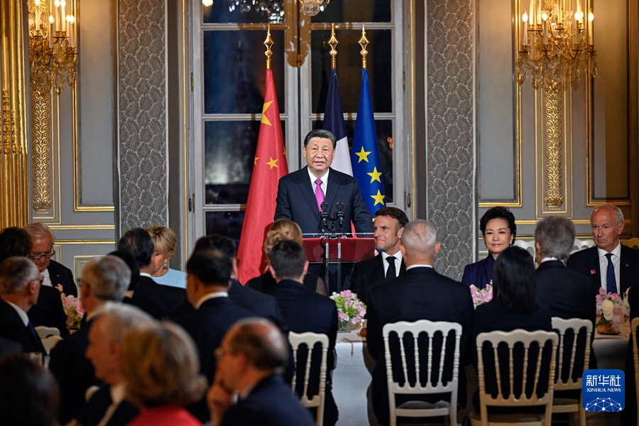 當(dāng)?shù)貢r(shí)間5月6日晚,國家主席習(xí)近平和夫人彭麗媛在巴黎愛麗舍宮出席法國總統(tǒng)馬克龍和夫人布麗吉特舉行的歡迎宴會(huì)。新華社記者 殷博古 攝當(dāng)?shù)貢r(shí)間5月6日晚,國家主席習(xí)2024-05-07